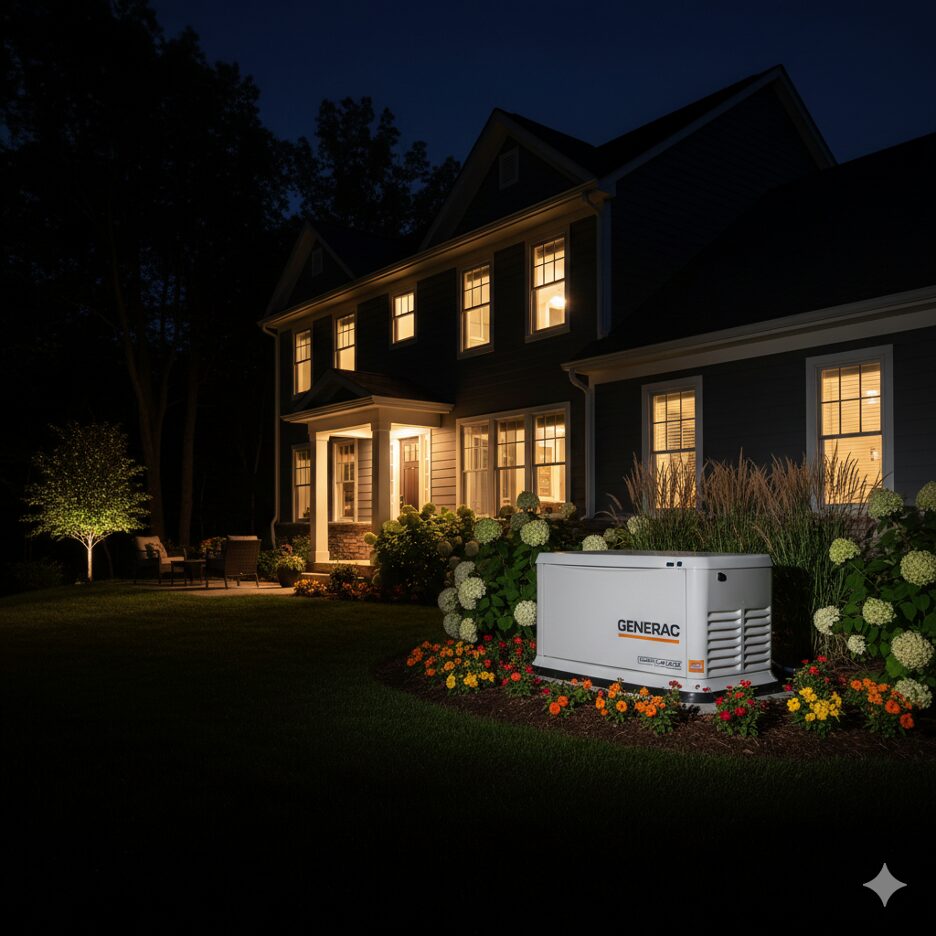Whole-home generators use an automatic transfer switch to detect power loss. When the electrical supply from the utility company stops, the switch signals the generator to start. Once utility power is restored, the system safely transitions back and shuts down the generator. Falcon ensures that every generator installation includes proper transfer switch configuration, so the transition between power sources is seamless and safe.